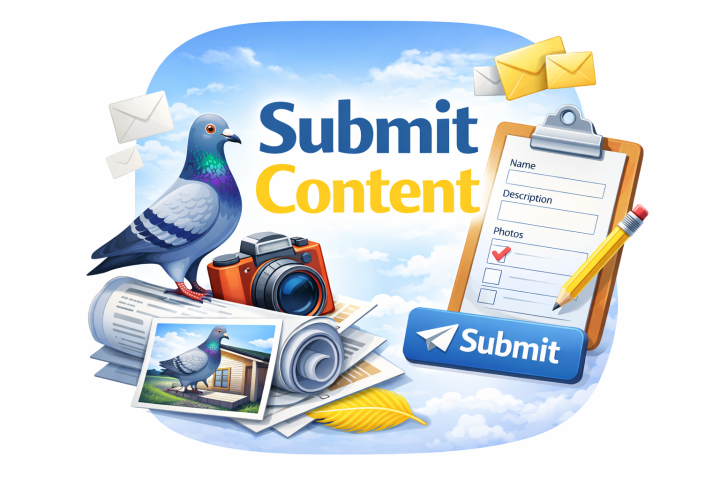 Clubs, breeders and fanciers are welcome to send in race results, loft visits, club news, birds for sale, photos and stories.